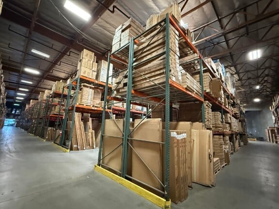 Featuring: (700) Sections of Interlake teardrop pallet rack with 144" beams and wire decks • (2,000+) sections of steel shelving • (4) Big Ass Fans • (15) Crown, Raymond, Toyota order pickers & reach trucks • Raymond & Toyota electric pallet jacks • battery chargers • floor scrubbers • Zebra label printers • conveyor • spare parts • yellow guard rail • office & break room furniture • support equipment • more •