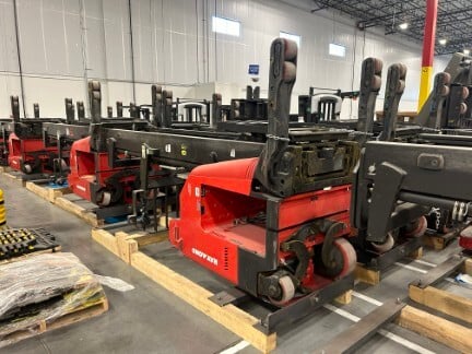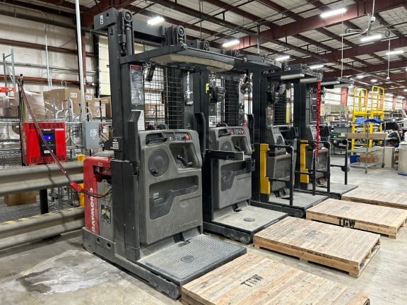 Featuring: (29) Raymond electric reach trucks, order pickers, & stand-up lift trucks (New as 2022) • (8) 2017 Raymond electric pallet jacks • (50+) Movex carts • teardrop pallet rack • TGW conveyor sorting system • flexible conveyors • Quincy & IR air compressors • (15) Little David carton sealers • Generac generator • large quantity of guard rail • ...