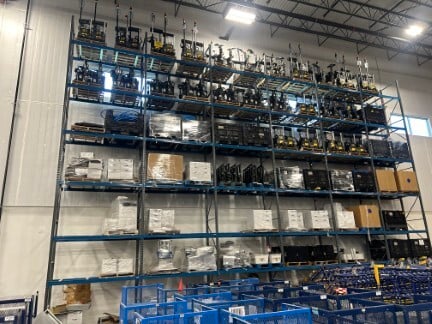 Featuring: (400) Bays of INTERLAKE Teardrop Pallet Rack - 42" D x 24' T Uprights • 96" X 4" & 144” x 5” Teardrop Beams • Wire Decks • (20) RAYMOND & CROWN Electric Order Pickers • Reach Trucks and Sit-Down Forklifts • Counter-Balance Forklifts & Electric Pallet Trucks • TENANT 7300 Floor Scrubber • JLG Scissor Lifts • ENERSYS Battery Chargers • ...