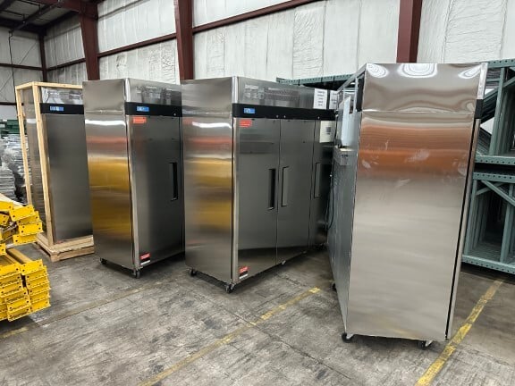 Featuring: (200+/-) 42” x 26’ teardrop pallet rack uprights • (100+/-) 44” x 26’ Ridg-U-Rak uprights • (1,200+/-) 96” x 4” teardrop pallet rack beams • (1,800+/-) 96" x 4" Ridg-U-Rak pallet rack beams • (950+/-) 136” x 4-½” Ridg-U-Rak pallet rack beams • 2014 Shanklin F5AC wrapper & shrink tunnel • Shanklin HS-1 wrapper & T71 shrink tunnel • Hyster 4,000 lb. capacity 48V electric forklift • (3) Wulftec & Onon stretch wrappers • (6) BestPack & Little David case sealers • (2) Ingersoll Rand air compressors • Sullair LS-10 air compressor • Gardner Denver Electra screw compressor • Zeks HeatSink air dryer • (4) Turbo Air M3F72-3 freezers • (7) forklift battery chargers • (2) Cascade fork attachments & pinch clamp attachment • (3) portable dock ramps • MORE •