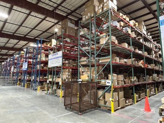Featuring: (29) Raymond electric reach trucks, order pickers, & stand-up lift trucks (New as 2022) • (8) 2017 Raymond electric pallet jacks • (50+) Movex carts • teardrop pallet rack • TGW conveyor sorting system • flexible conveyors • Quincy & IR air compressors • (15) Little David carton sealers • Generac generator • large quantity of guard rail • column protectors • (20) Zebra printers • toolboxes •