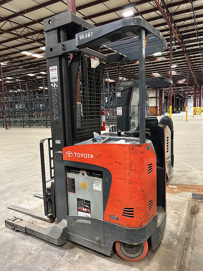 Featuring: (1,000+) Bays of Interlake & Unarco Teardrop Pallet Rack Consisting of 42" Deep x 15-18' Tall Uprights, 92-144" Beams, 42" x 43”-46" Wire Decks • (8) Crown & Toyota Reach Trucks & Order Pickers • Spare Batteries • (9) Big-Ass Fans • Max-Pak & PTR Vertical Balers • (30+) Manual Pallet Jacks • (20) Pieces of Nestaflex 376 Flexible Conveyor • Hytrol Powered & Manual Conveyor • Dump Hoppers • Carts & Office Furniture