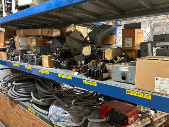 RACKS AND SHELVES OF SPARE PARTS, MOTORS, ELECTRICAL, MRO