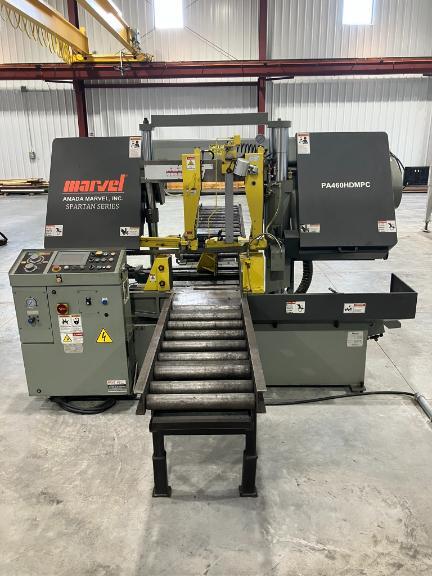 AMADA MARVEL PA460HDMPC Automatic Horizontal Band Saw with 18” Round Capacity, 18” x 18” Rectangular, Auto Bar Feed, 1.5” Blade, Infinitely Variable Speeds, In/Out Conveyor, Programmable Touch Screen Control, sn:FPA460-134MPC, mfg.2022 (Cons #1)