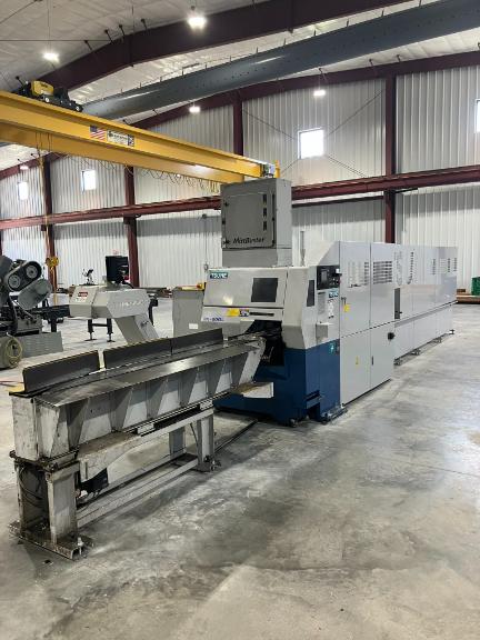 MAZAK QUICK TURN 350MY CNC Lathe with Y-Axis & Milling, 12” SMW W325 Combination 3-Jaw Auto Centering Chuck, 30” Swing x Approx. 80” Centers, 4” Bar Capacity, Spindle Speeds to 4,000 RPM, 12 Position Turret, Hydraulic Steady Rest, Chip Conveyor, MAZATROL SmoothG CNC Control, sn:345525, mfg.2023, **Integrated with, but may be sold separate** 2024 SCHWOEPPE MACHINE & TOOL Robotic Machine Tending Cell with FANUC M-900IB/700 6-Axis Robot with FANUC R-301B Plus Control, sn: E23831036, Mfg. 2023 & ROCKWELL AUTOMATION PanelView Plus Control, sn: 12054 (Cons #2)