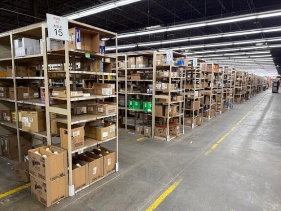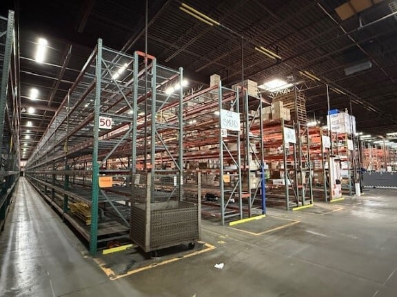 Featuring: (250) Bays of INTERLAKE Teardrop Pallet Rack - 42" D x 24' T Uprights, 96" X 4" & 144” x 5” Teardrop Beams, Wire Decks • (5) RAYMOND Electric Order Pickers • RAYMOND Deep Reach Truck • (2) CROWN & RAYMOND Stand-Up Lift Trucks • TENANT 8300 Floor Scrubber • Battery Chargers • Lift Truck Batteries • Maintenance Shop Equipment • Distribution Center Support Equipment • Break Room & Office Furniture • More •