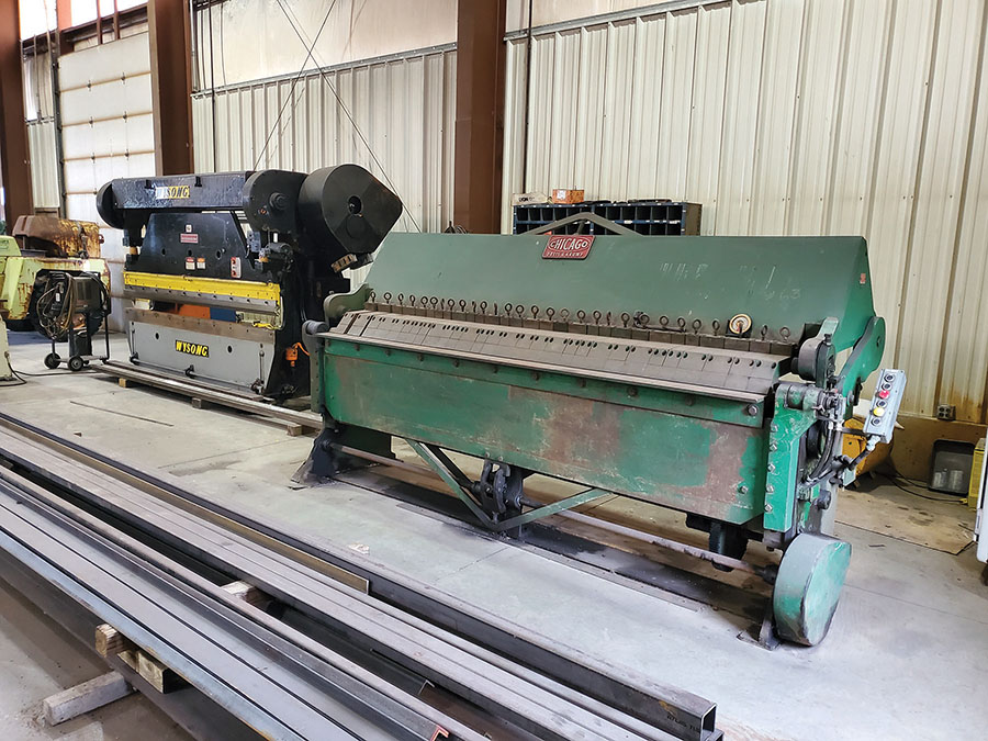 Featuring: Cincinnati & Wysong Press Brakes to 400-Ton • 12' Shear • Bertsch Plate Bending Roll • Scotchman and Geka Ironworkers • Chicago Dries & Krump Finger Brake • 10' Leaf Brake • Track Burners • Welders & Plasma Cutters • Mittler Brothers Tubing Notcher • (2) Wells Horizontal Band Saws • Lenox Band Saw • Cold Saw • Ridgid Pipe Threader • Air Compressors to 50-HP • Clark 30,000-lb. & CAT 5,000-lb. Forklifts • Shipping Containers & More