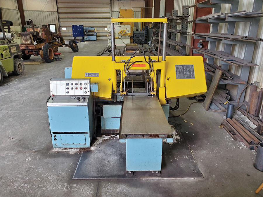 WF Wells Hydraulic Horizontal Band Saw, Model W-9, S/N 823847, Saw Vise, (2) 10' HD Feed Conveyor