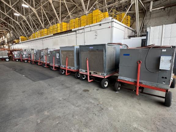 Featuring: Complete Machine Shop and Sheetmetal Fabricating Shop — (3) HAAS Machining Centers AS NEW AS 2021 • Lathes • Mills • Brakes • Shears • Roll • Complete Weld Shop • (5) Wisconsin Oven Corp. Heat Treating and Aging Oven AS NEW AS 2023 • Large Quantity of Ground Support Equipment -- (10) Hobart and Unitron GPUs • (10+) Portable Air Conditioners • Large Capacity Tugs • Shore Power • Mobile ACUs • Lavatory Service Vehicles • Large Quantity of Airplane Jacks • Tripods • Tow Bars • Broderson Cranes • Forklifts Up to 20,000 lb Capacity • 125’ Genie Boomlift • (20+) Service Trucks • Vans • Buses • Fuel and Lube • (30+) John Deere Gators • Kawasaki Mules • Golf Carts • Portable Light Plants • GFS Paint Booth and Kitchen — NEW 2019 • Torit 8-Cartridge Backdraft Booth •100 HP Gardner Denver Air Compressor — New-Never Installed • Large Quantity of Raw Materials — Titanium • Aluminum • Stainless •