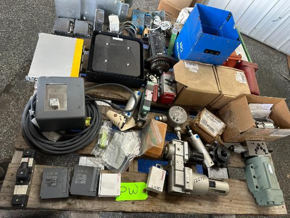 (PW) (New & Used) Pallet of Misc. Items, Fanuc 2.5KW Servo Motors, Circuit Boards, Ball Valve, Allen-Bradley, Turck, Rexroth, & More
