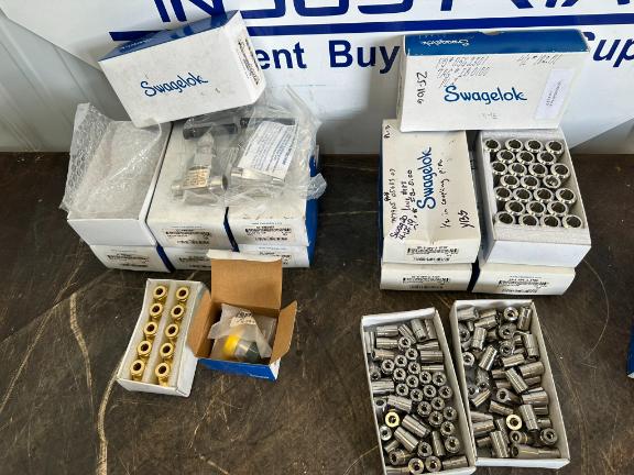 (KB) Pallet of Misc. Items; Pillar Block Bearing Housings, Bearings, Junction & Pull Box, Delaval Directional Control Valve, Rolls of Tubing, & More