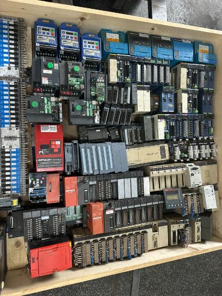 (DB) Pallet of Electrical Parts, AEG Modicon Rack, Allen-Bradley 1756-L63 Processor w/ Rack, Allen-Bradley Size 3 Starter, Circuit Breakers, & More