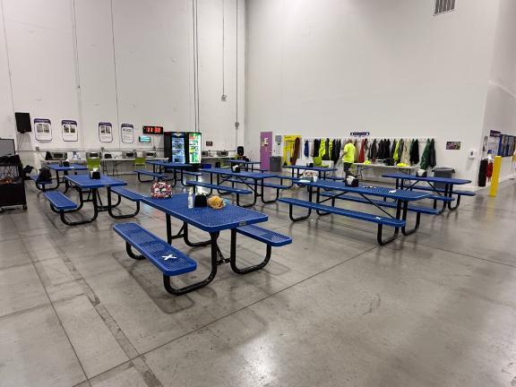 CONTENTS OF BREAK ROOM AREA WITH PICNIC TABLES |