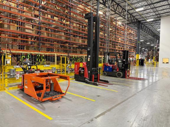 YELLOW AND BLUE STACK RACK THROUGHOUT BUILDING |